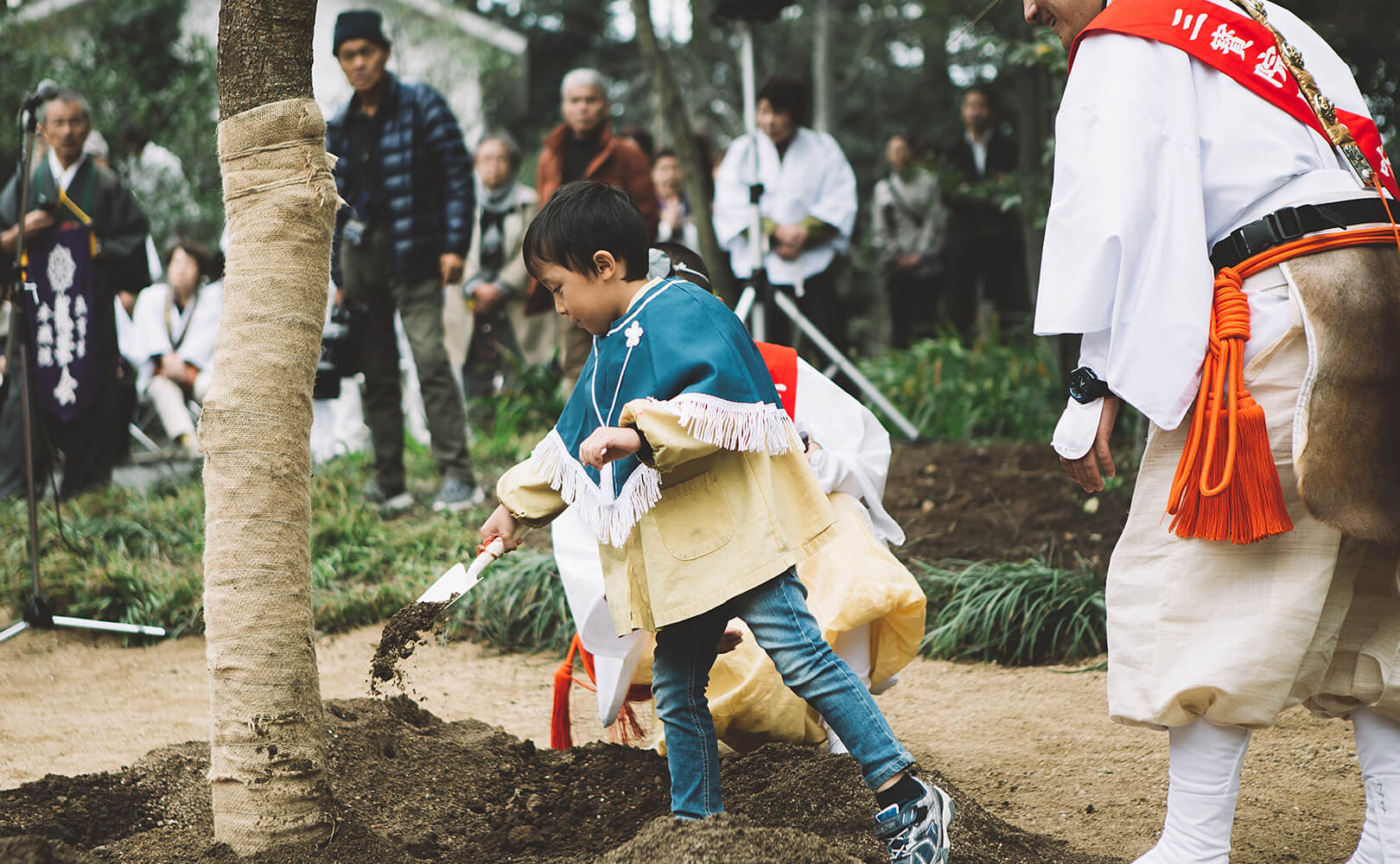 前年の「百螺祈願」にならい、子どもたちが加藤神社と阿蘇神社へ赴く巡礼の旅。阿蘇神社・加藤神社ならびに菩提樹苑に植樹された3本の「醍醐の桜」に、阿蘇・国造神社の「手野の名水」を洒水(水やり)して熊本地震への復興を祈りました。そろいの「子ども山伏」姿で各所を参拝、熊本の復興への歩みをその目に焼き付けました。