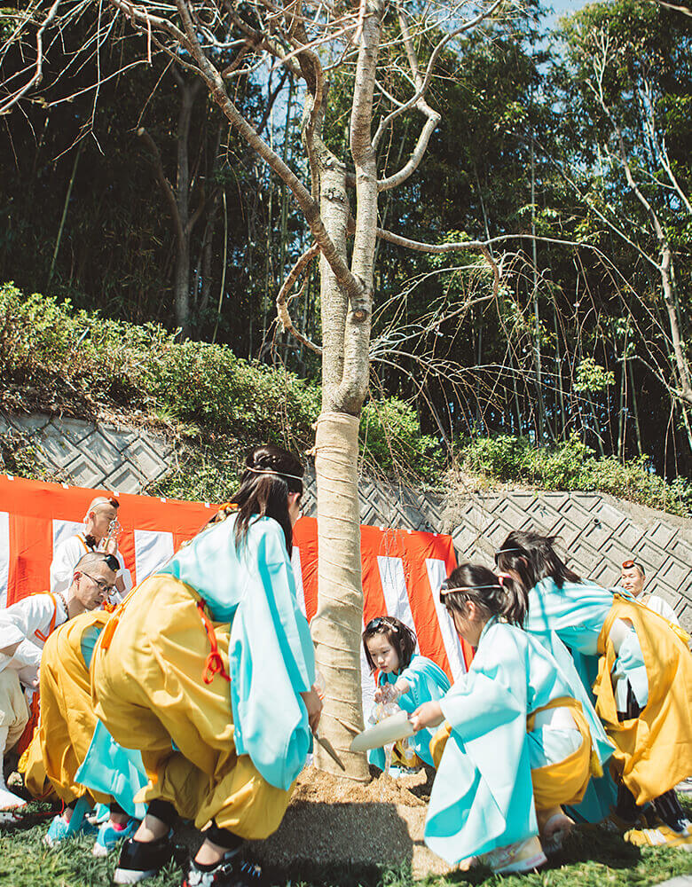 地震発生から約1年となる、平成29年4月から執り行われたのが子どもたちによる「さくら祈願」です。平成31年春の「第3回さくら祈願」まで続きました。