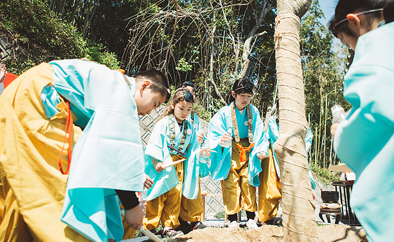 菩提樹苑ならびに加藤神社、阿蘇神社に植樹された「醍醐の桜」は、太閤しだれ桜のクローン。百螺祈願への取り組みに賛同いただいた醍醐寺から譲り受けた、熊本に3本しかない桜です。これからも、阿蘇神社・熊本城(加藤神社)・菩提樹苑の桜を結ぶ線が結界となり、熊本を守り続けてくれることでしょう。