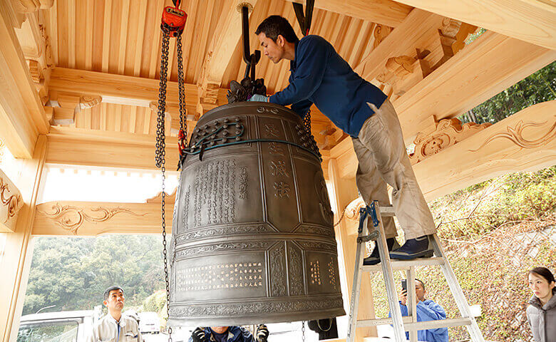 震災後1年に間に合わせるために梵鐘制作の「岩澤の梵鐘(京都)」様ならびに、鐘楼堂建築の「志田建設」様にご協力いただき、急ピッチでの完成が実現しました。