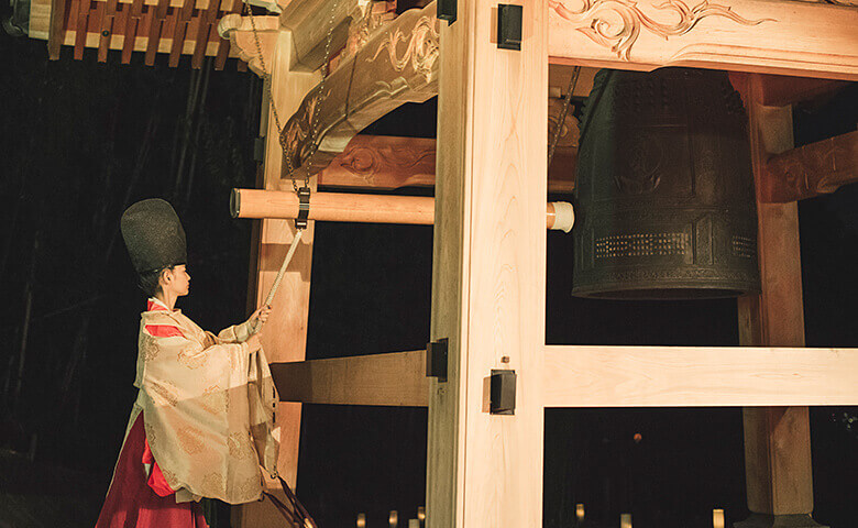 当苑の最も眺めのよい場所に設置された梵鐘は、訪れる方が自由に撞いていただけるように開放しています。さらに、鐘楼堂前のスペースは「鐘楼堂広場」と呼ばれ、8月の「盂蘭盆会万灯供養」や、大晦日の「除夜の鐘」など、多くの人が集まる場所となっています。