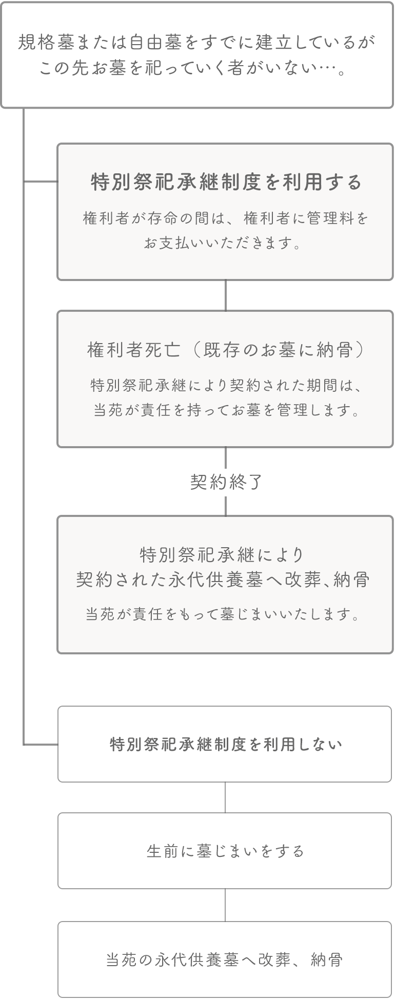 承継者がない方に代わり、当苑が管理を行います